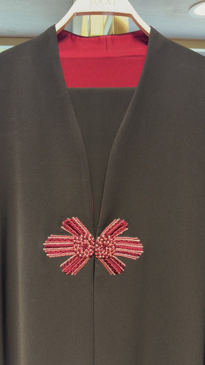 عبائة من المخمل مطرزة بتطريز يدوي مبطنة بالحرير .